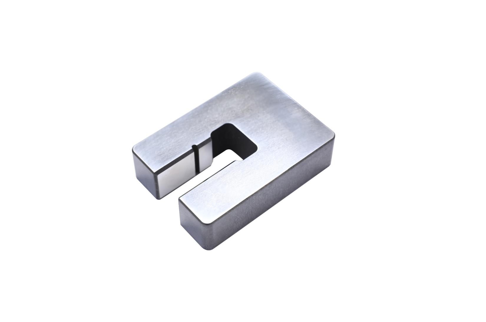![]() 产品名:DK冲针 材料: 440C 主要工艺:磨床、电火花 技术难点: --细长特征加工难度大,内外径同轴度0.005mm; --冲针头部轮廓度0.003mm; --整体氮化钛涂层 | ![]() 产品名:HGA成型冲头 材料: CD650 + PCD 主要工艺:焊接、平磨、慢走丝 技术难点: -- PCD硬度及寿命高于钨钢多倍 --尺寸与形位公差精度 0.003mm -- PCD部分表面粗糙度Ra0.2 | ![]() 产品名:HGA压头 材料: 440C 主要工艺:电火花,抛光 技术难点: --外形尺寸及形位公差0.003 --顶部电火花加工异型槽轮廓/深度公差0.003mm --整体金刚石涂层 |